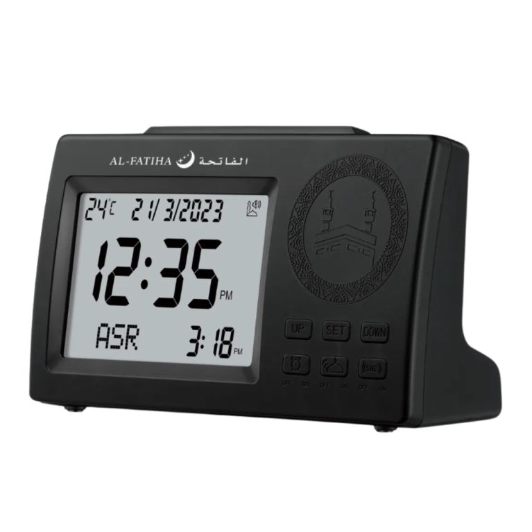 Avec son affichage LCD haute définition, son Athan intégré et ses fonctionnalités personnalisables, ce réveil est l’outil idéal pour ne plus jamais manquer une prière, que vous soyez chez vous, en déplacement ou au bureau.