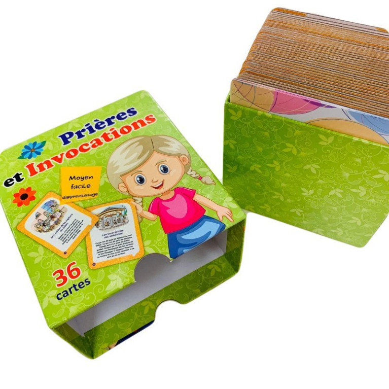 Le jeu de "Prières et Invocation الادعية و الادكار" sont des cartes ou l'enfant pourrais apprendre la base des prières et invocations de la manière la plus simple grace aux textes et des phrases simples avec les signes diacritiques.