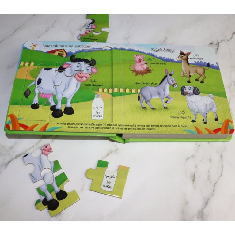 Offrez à votre enfant une immersion dans l’univers du Coran avec ce livre puzzle bilingue français/arabe.