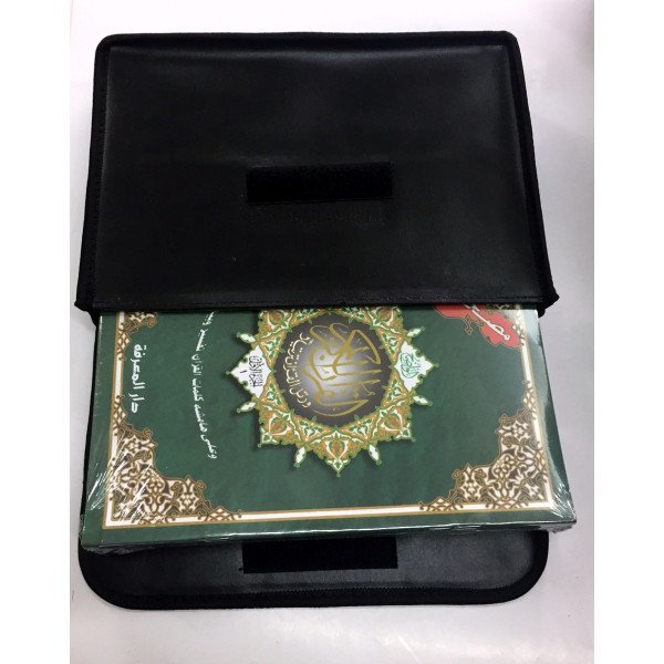 Le tout est présenté dans un joli sac en cuir noir et solide parfaitement conçu pour protéger les pièces de toute perte ou de tout dommage, ses couleurs sont différentes pour chaque règle de Tajweed, ce qui facilite la tâche.