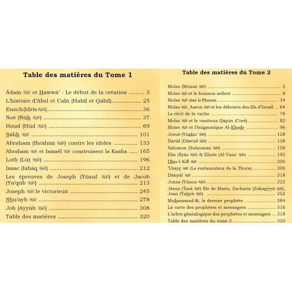 Vous trouverez à la fin du Tome 2 «L’arbre généalogique des prophètes» ainsi que «La carte des prophètes et messagers».