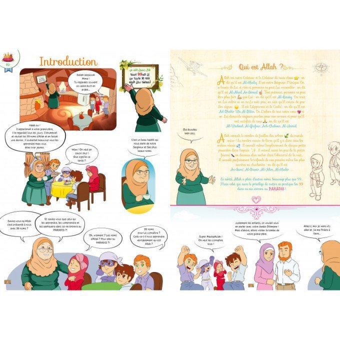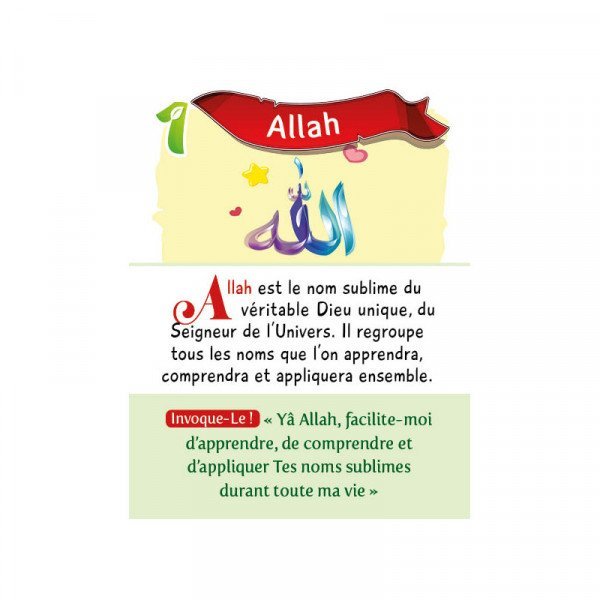 • 99 noms d’Allah expliqués aux jeunes (définition, illustration).