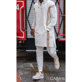 Le Pull est avec un logo léger sur la poitrine et une coupe incurvée Qaba'il.